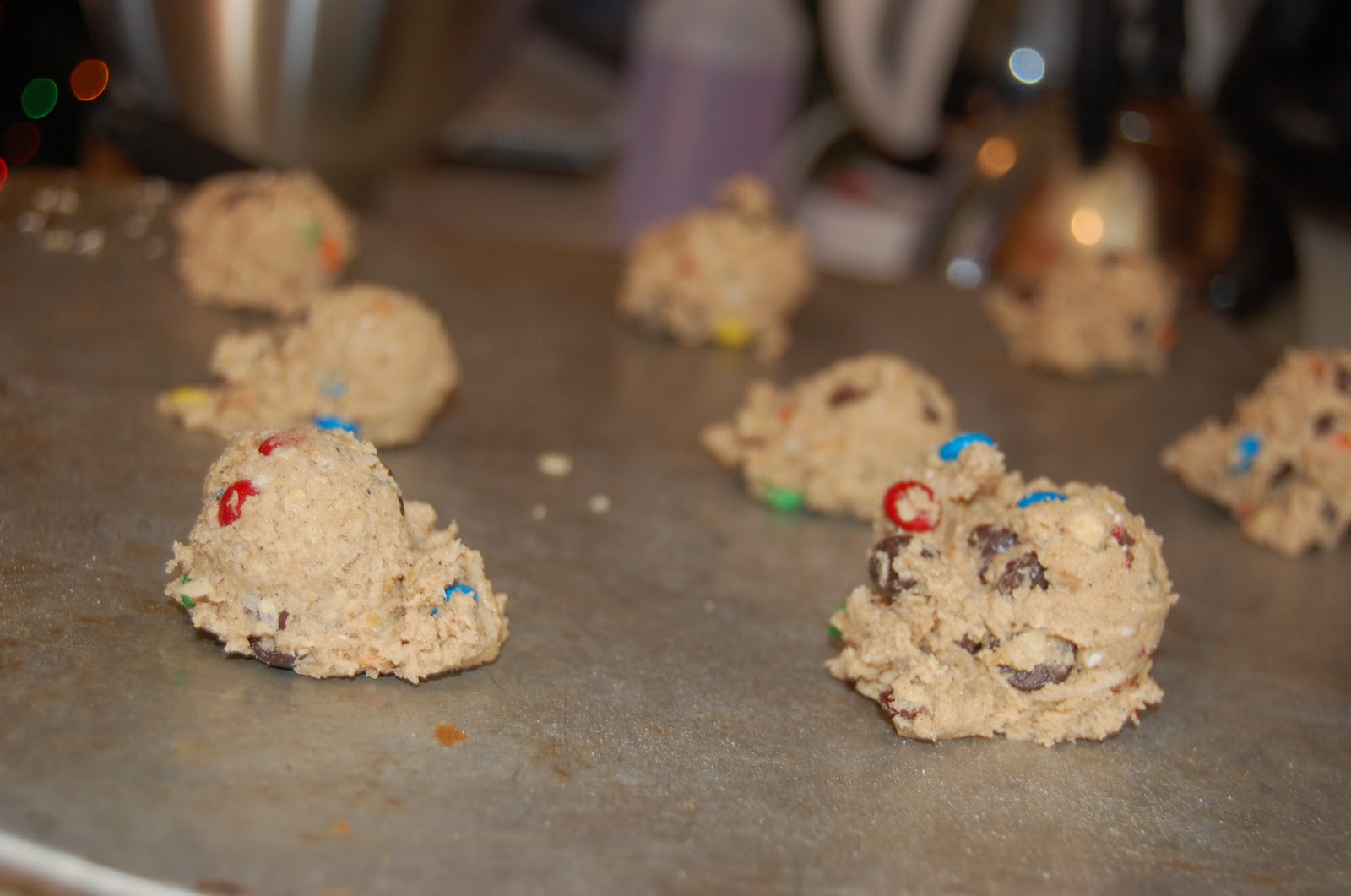 On with my success, I put mini m and m's, semi sweet chocolate chips, butterscotch chips, and coconut in the cookies. Simple Scrumptious.